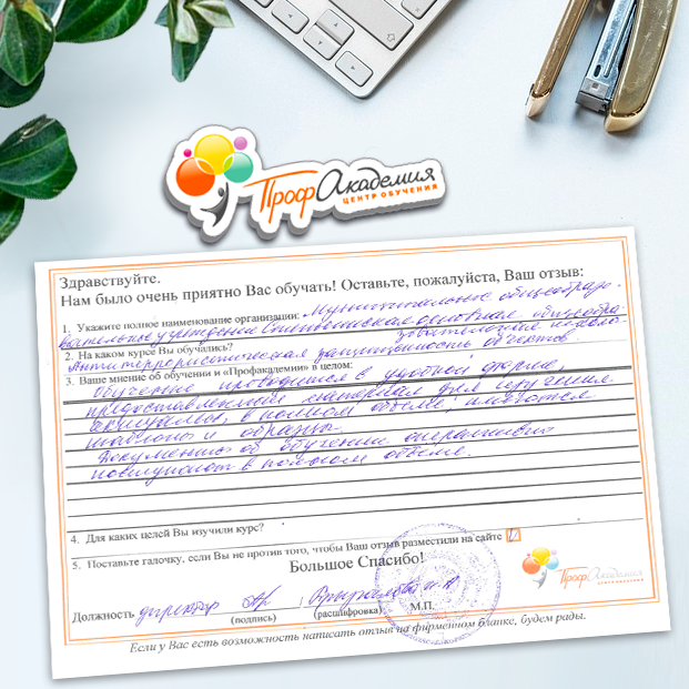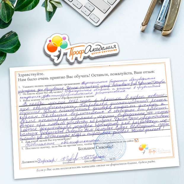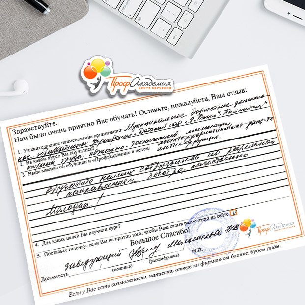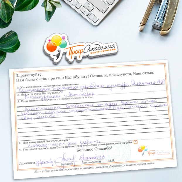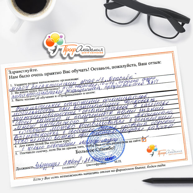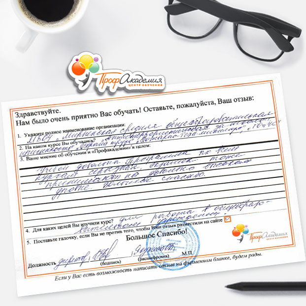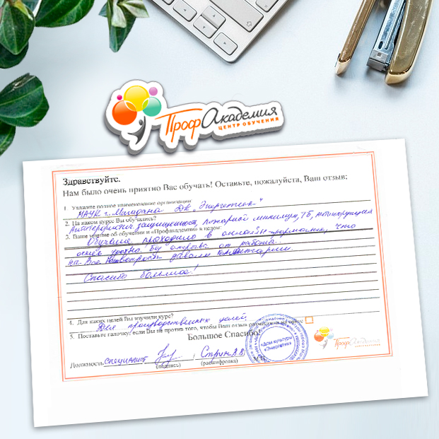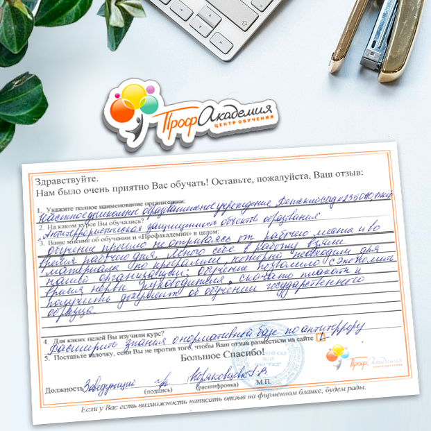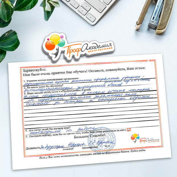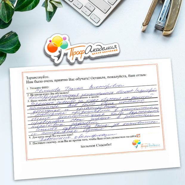 Это не первый курс, по которому мы проходим обучение в "Профакадемии". Материалы курса актуальны, ими можно воспользоваться и после обучения. Программа составлена доходчиво, понятно. Спасибо за обучение.