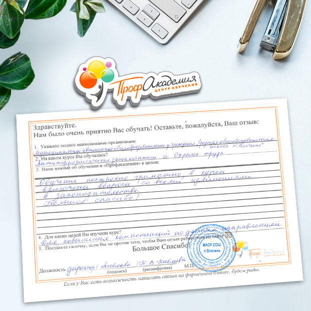 Обучение построено грамотно, в курсы включены вопросы со всеми изменениями в законодательстве. Большое спасибо!